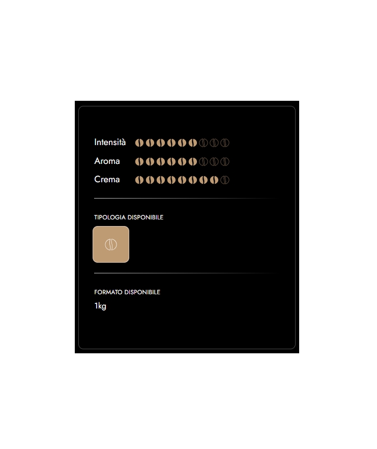 Na nepcu, mješavina otkriva punu i skladnu strukturu, sa zaobljenim i postojanim okusom koji podsjeća na užitak klasičnog talijanskog espressa.