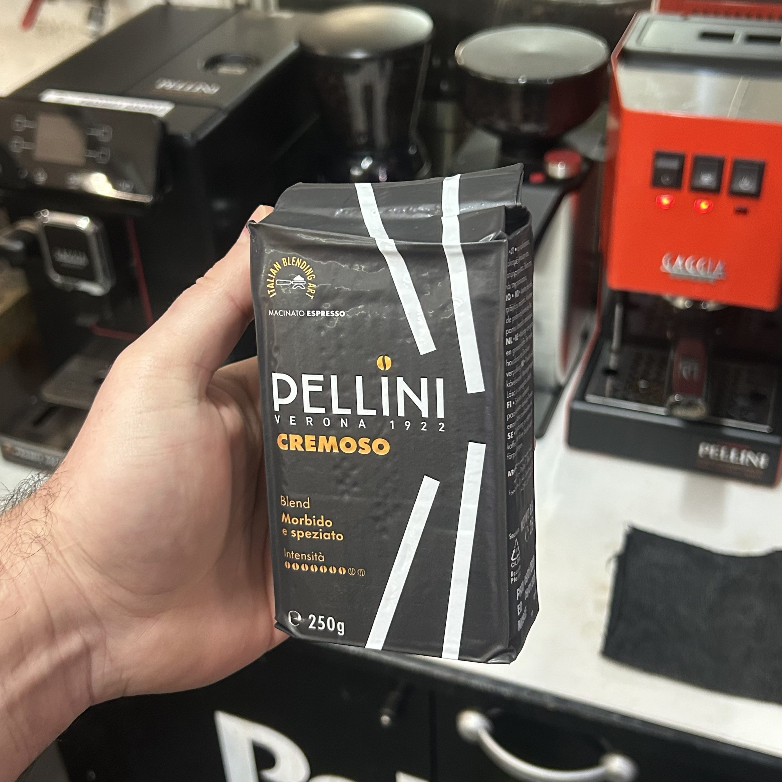 Pellini Cremoso mljevena kava za espresso idealna je za sve koji traže omiljeni talijanski espresso kod kuće, s punim i uravnoteženim okusom u svakoj šalici.