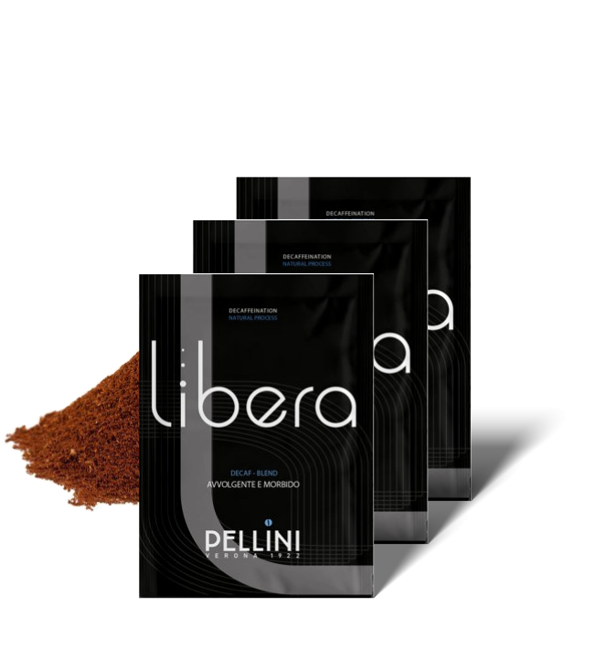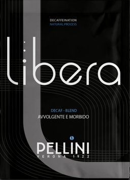 Pellini Libera je mljevena kava bez kofeina, pakirana u pojedinačne paketiće od 7 g, posebno prilagođene za HoReCa sektor. Svaki paketić sadrži pažljivo odmjerenu količinu kave, osiguravajući bogat okus i postojanu kremu, ali bez stimulativnog učinka kofeina. Paket sadrži 50 zasebno pakiranih porcija, idealnih za profesionalnu upotrebu u hotelima, restoranima i kafićima.