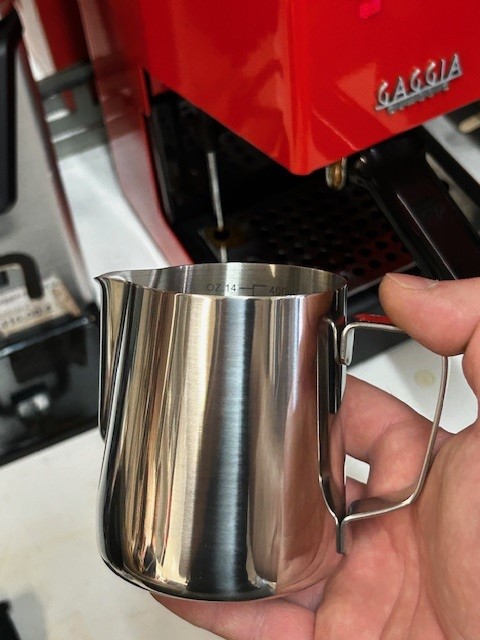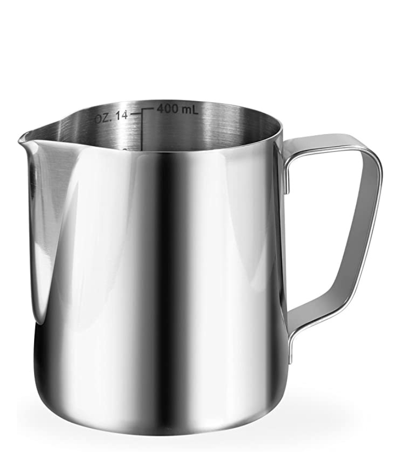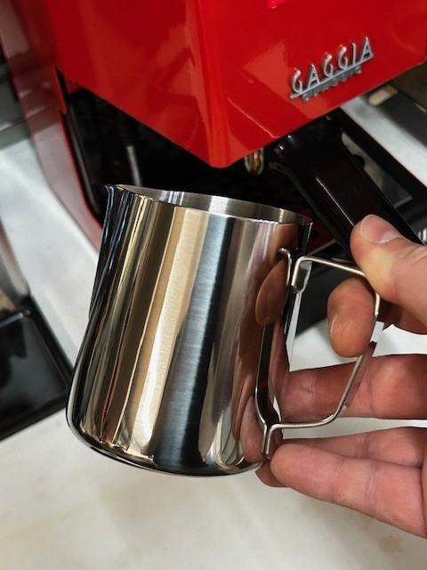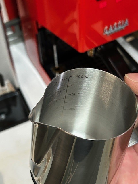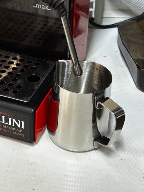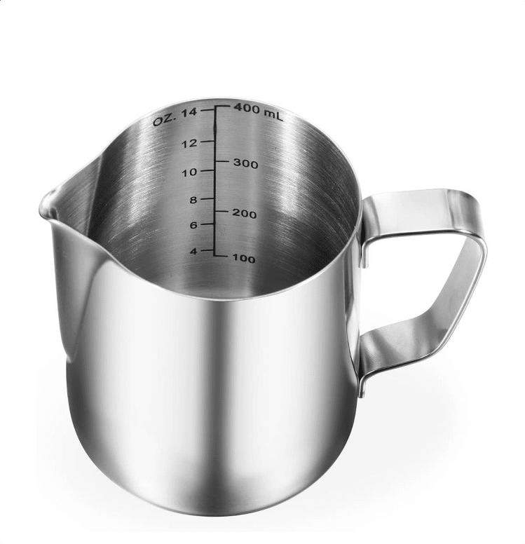 Idealna veličina za izradu jednog do dva cappuccina, najčešće korištena dimenzija tj. zapremina za bariste je upravo ovakva posuda volumena 350 – 400 ml u koji se toči 1-2 dcl mlijeka koje se ugrije do savršeno kremastog dodatka za Vaš macchiato ili cappuccino