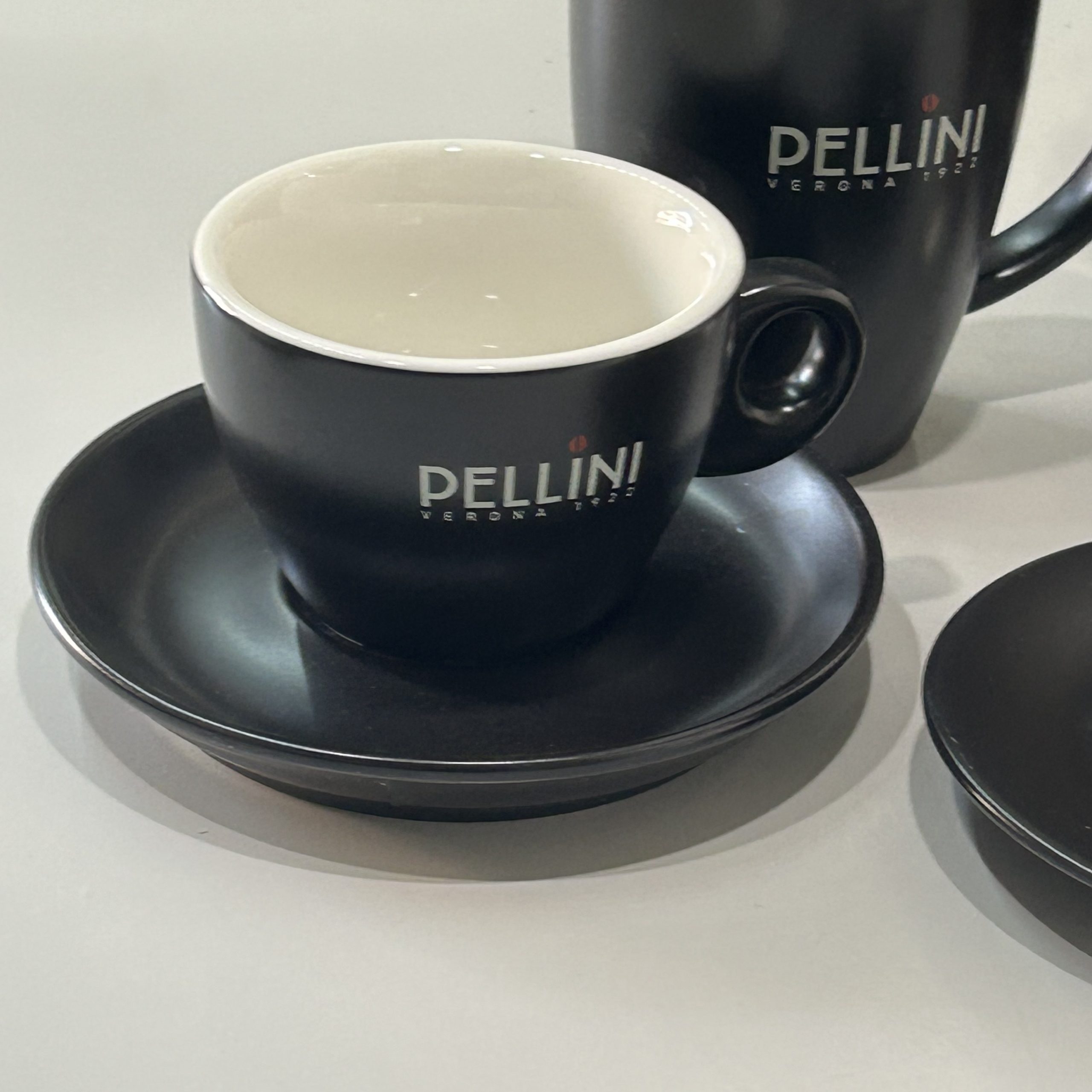 Elegantne Pellini Nera cappuccino šalice idealne su za pripremu i posluživanje cappuccina i drugih napitaka s mlijekom. Klasičan oblik i crni dizajn s Pellini logom daju profesionalan i prepoznatljiv izgled, prikladan za dom, ured ili ugostiteljstvo.
