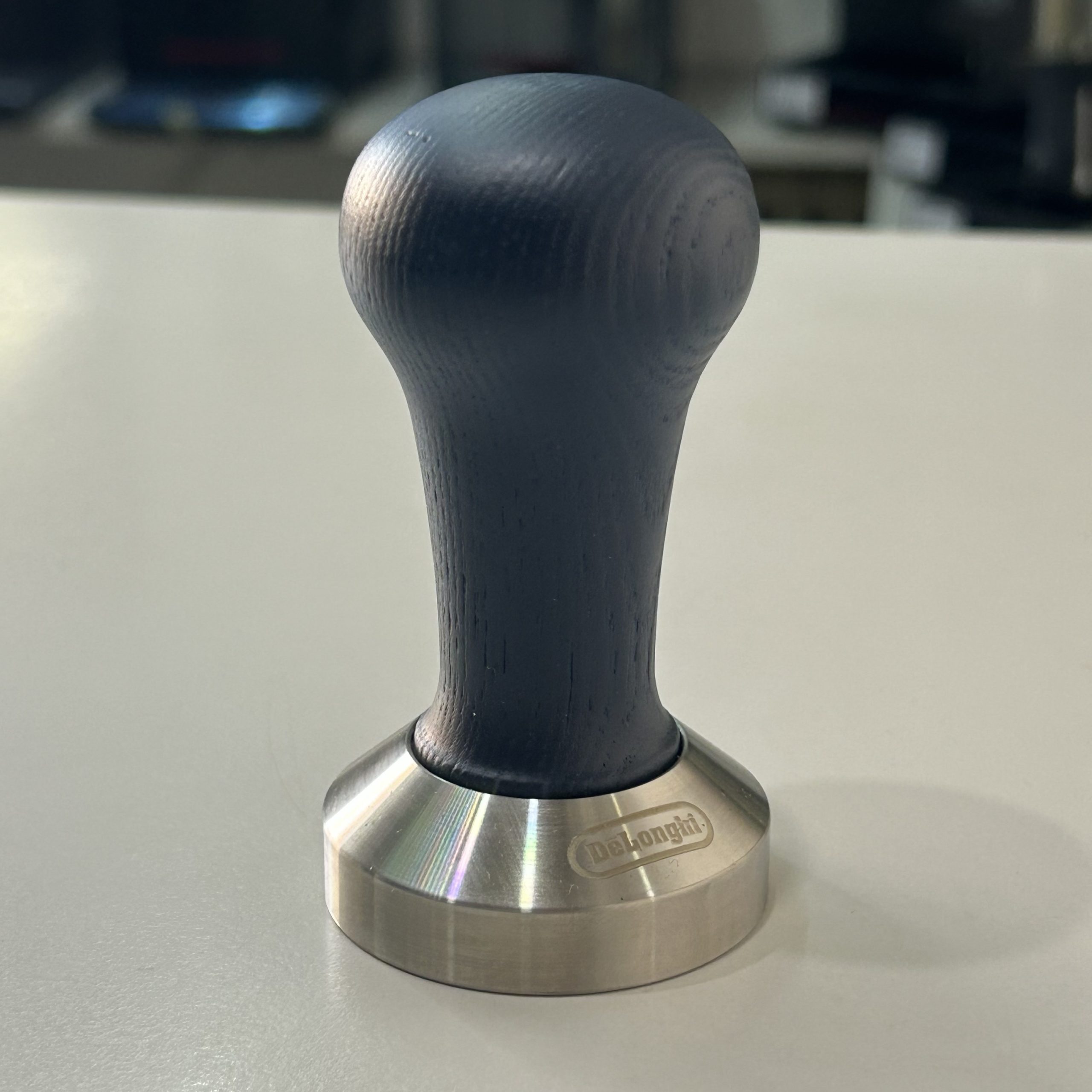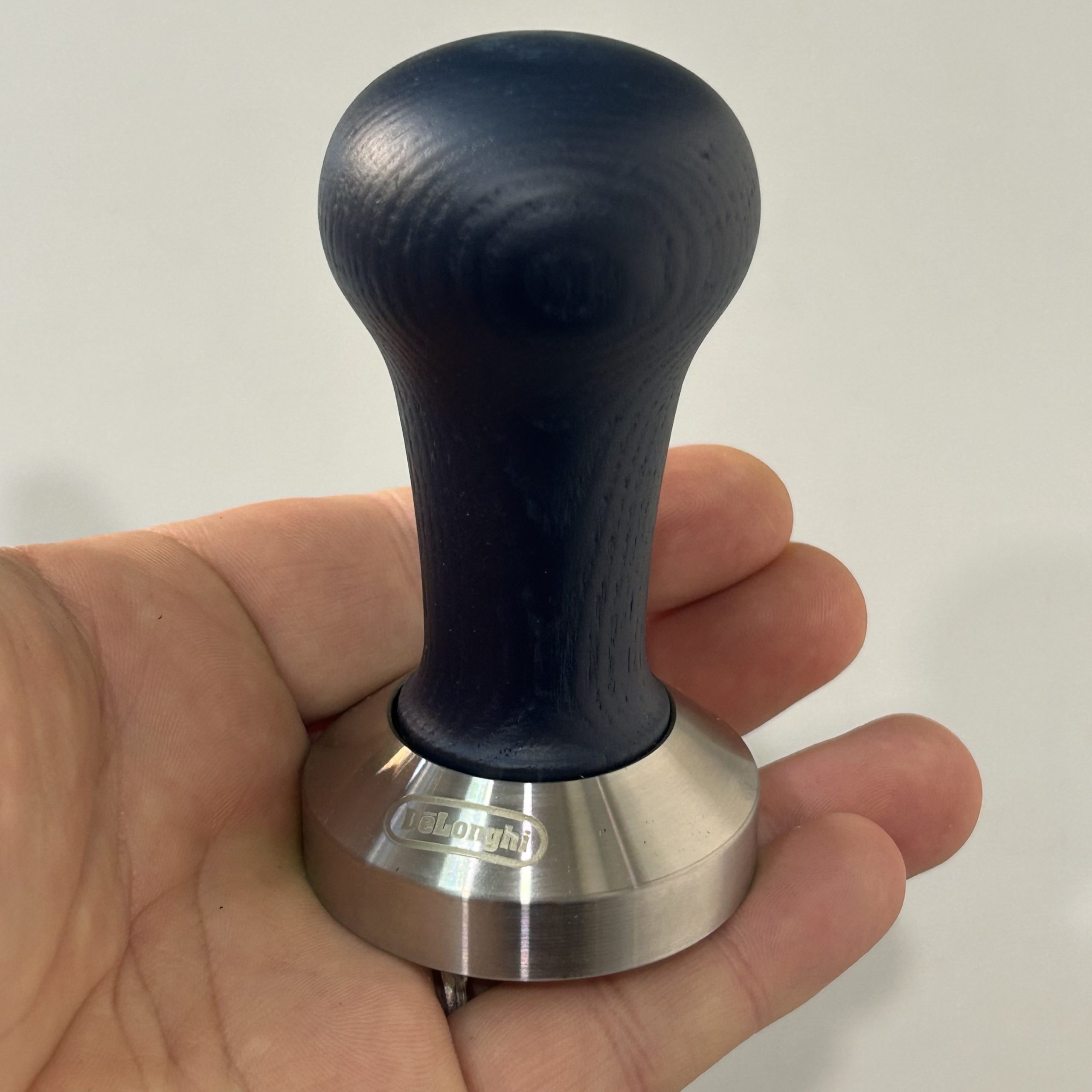 Tamper ima ergonomsku drvenu ručku i čeličnu bazu, što osigurava stabilnost i dobar osjećaj u ruci tijekom tampiranja.