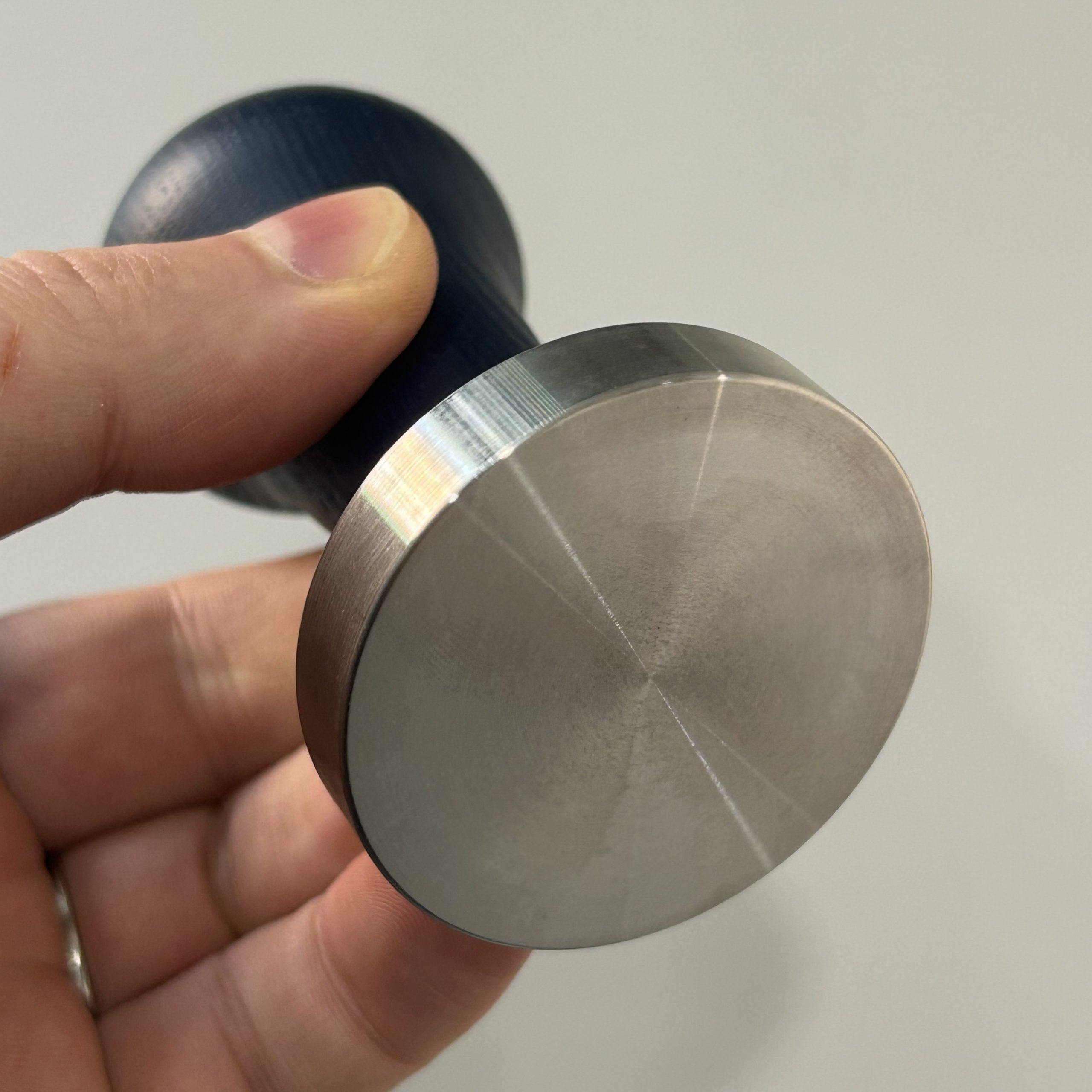 Profesionalni tamper (potiskivač) za espresso kavu s ravnim dnom (flat bottom), namijenjen za precizno i ravnomjerno sabijanje mljevene kave u portafilteru prije pripreme espressa.